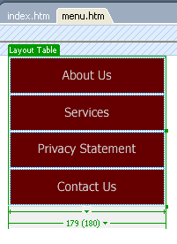 Open up Dreamweaver. You will notice 2 new files in your directory, the fireworks file with an htm extension and a javascript file mm_menu.js. Open the new file, and you will see your menu in a table.